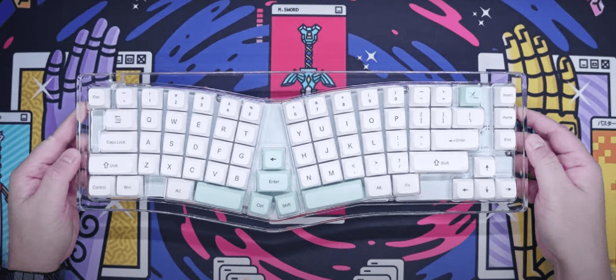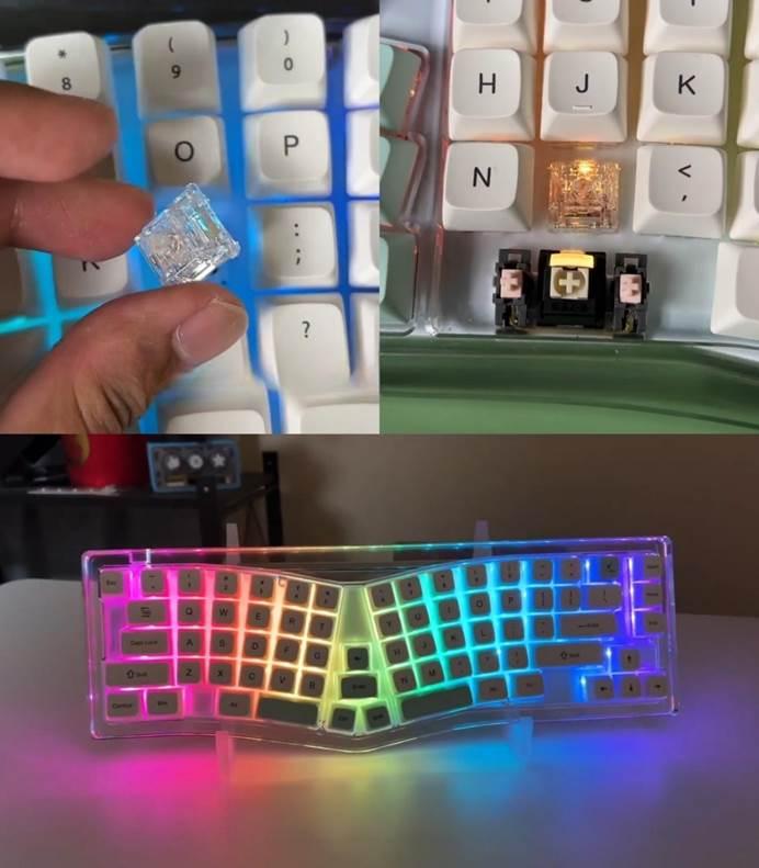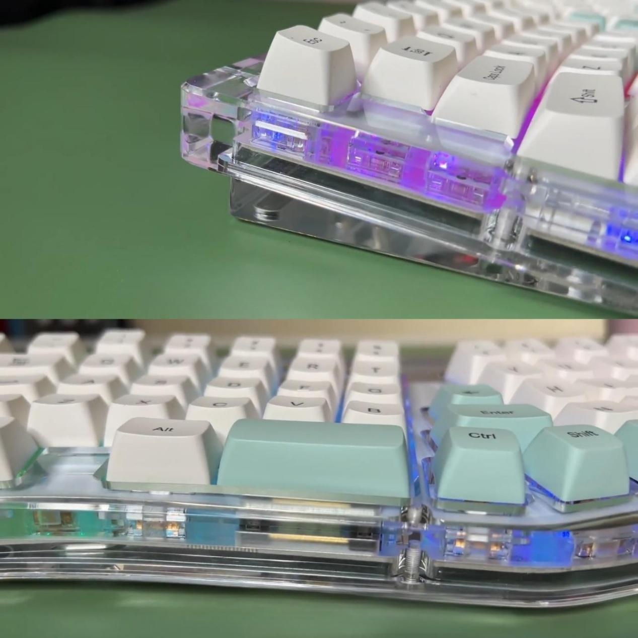 首先看外觀,X-Bows水晶鍵盤是真的好看。它的前一代產品是X-Bow slite,我之前也做過非常詳細介紹。X-Bows水晶鍵盤非常的小眾,它的主要用戶也是西方國家,所以我們很少見到身邊有人使用這款鍵盤。但是這個鍵盤又經常進入我的視野,因為它特殊的顏值成了某些網紅鍵帽品牌的鍵帽架。