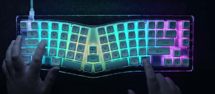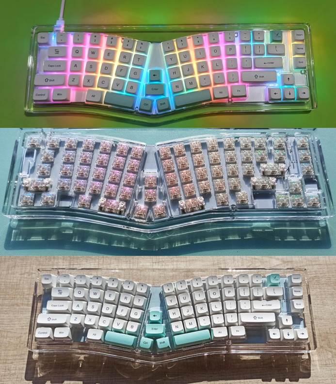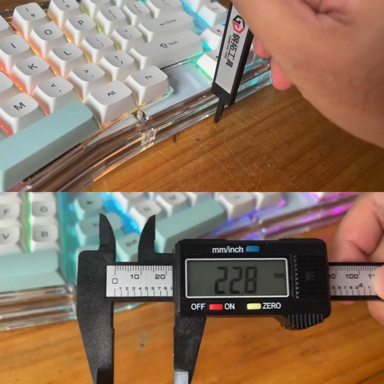 另外普通鍵盤玩家對鍵盤的高度也越來越敏感,這把鍵盤的高度也超過了22mm,需要配合手托進行使用,那這把鍵盤它不是Gasket結構,所以沒有必要塞各種各樣的墊片,它的外殼用的是亞克力材質,可能是為了整個鍵盤的牢固才增厚增重吧,但是這是一把人體工學鍵盤是不是可以考慮一下降低鍵盤的鍵高呢?