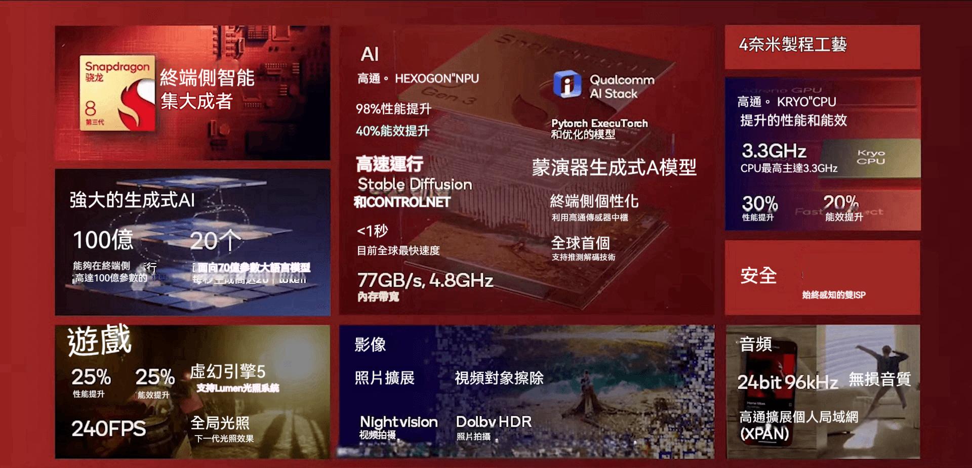 簡單總結一下處理器的部分啊,整體來說呢,這代驍龍8 gen3提升確實還是比較明顯的,特別是在它的CPU多核性能部分。那其次呢,就是在像王者榮耀這類低負載的遊戲或者是應用當中,它的整機能耗下降確實是有很明顯感知的。那這一點呢,在日常使用當中啊,感知會更加明顯一點。而面對像原神這樣的高負載的遊戲裡邊,他的整體能耗呢是略有下降啊,簡單說就是下降的沒那麼明顯,當然時間非常短暫啊。所以我們也只是測試了他的處理器的性能還有遊戲方面的一個初期的表現。這次其實還有一項很重要的更新那就是AI人工智慧可以說呢以上性能提升的遠不值AI處理能力方面的升級那麼多。而且還包括啊在端側的AI大模型支援等等,那不過具體的還要看終端廠商也就是手機廠商他們對AI人工智慧方面的投入如何,那關於AI這部分內容呢也請大家持續關注一下我們的後續會為你詳細的呈現。