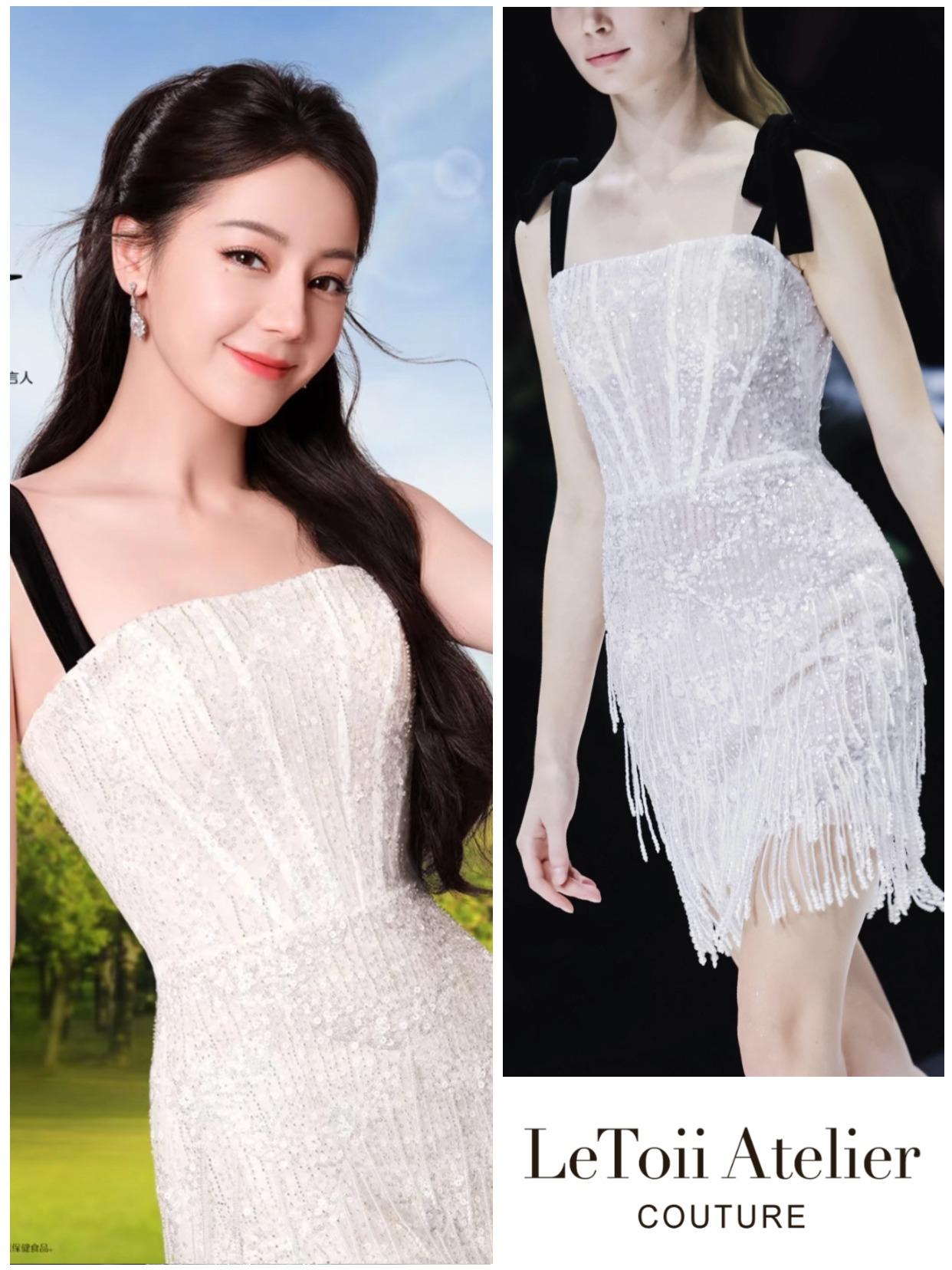 這件由LETOII ATELIER 品牌工作坊耗費140小時工時手工縫製的高級訂製服,以400,000顆珠鑽亮片與珍珠流蘇高級訂製手工技巧層疊而成,隨光影交錯,閃爍如夢。迪麗熱巴以獨有的姿態演繹,步履間,流蘇搖曳成韻,宛若一場星河低語的華麗舞曲。難怪再一次令粉絲盛讚「美得移不開眼」。