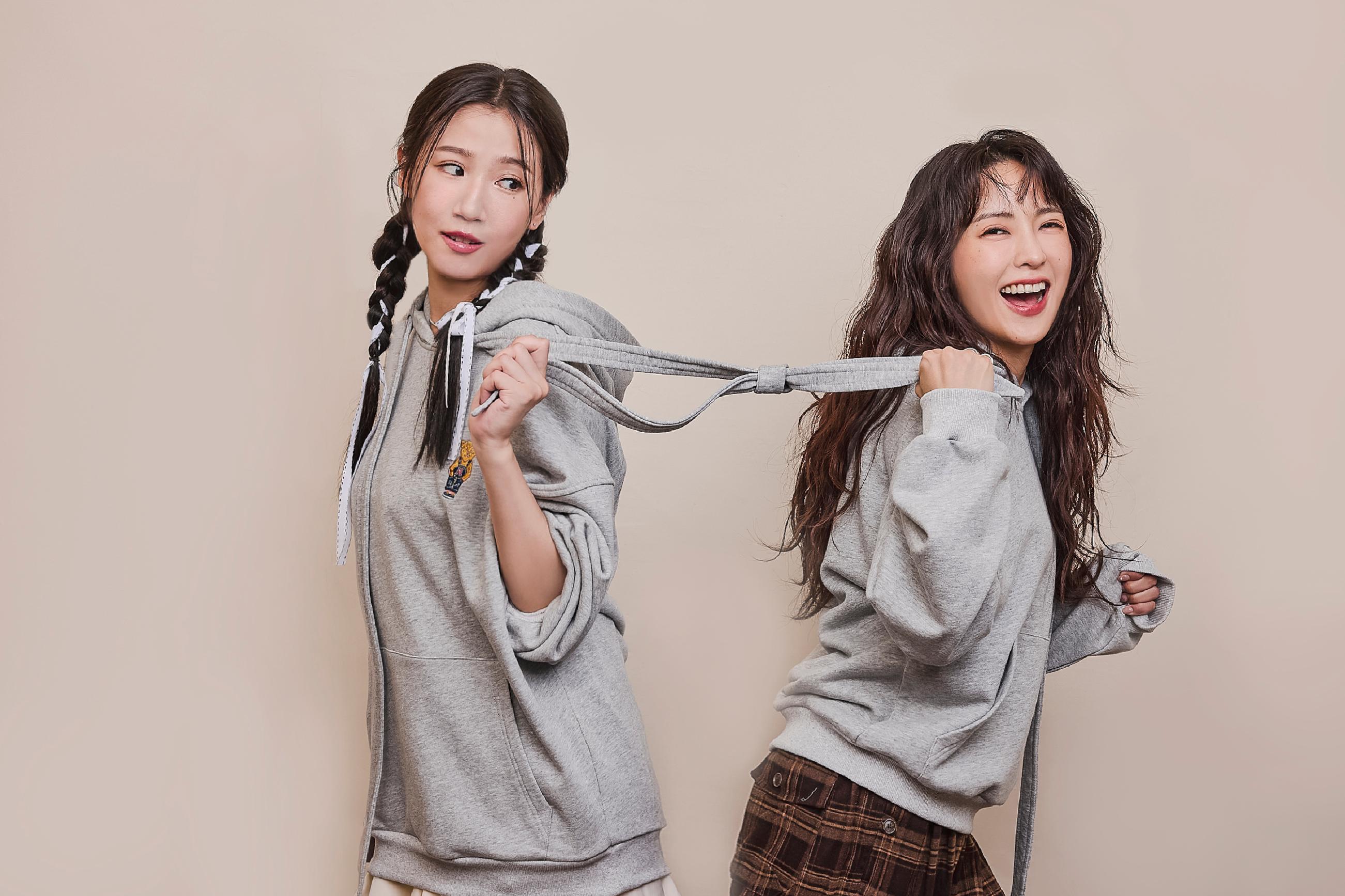 她說:「這個設計的靈感,來自親情、友情的一種牽掛,像是一個小小的結,一份掛心的思念。」她最喜愛的單品是綁結帽T與聯名長紗裙,那份隨性又有層次的造型,正是她心中最自在的樣子,也呼應 Huggy BFF 系列想傳達的親密連結。大元(林艾璇)更感性地說,這次的聯名不僅是時尚,更是一份陪伴與關懷:「希望透過 Huggy BFF 系列,把幸福穿在身上,也把溫暖散發出去。」